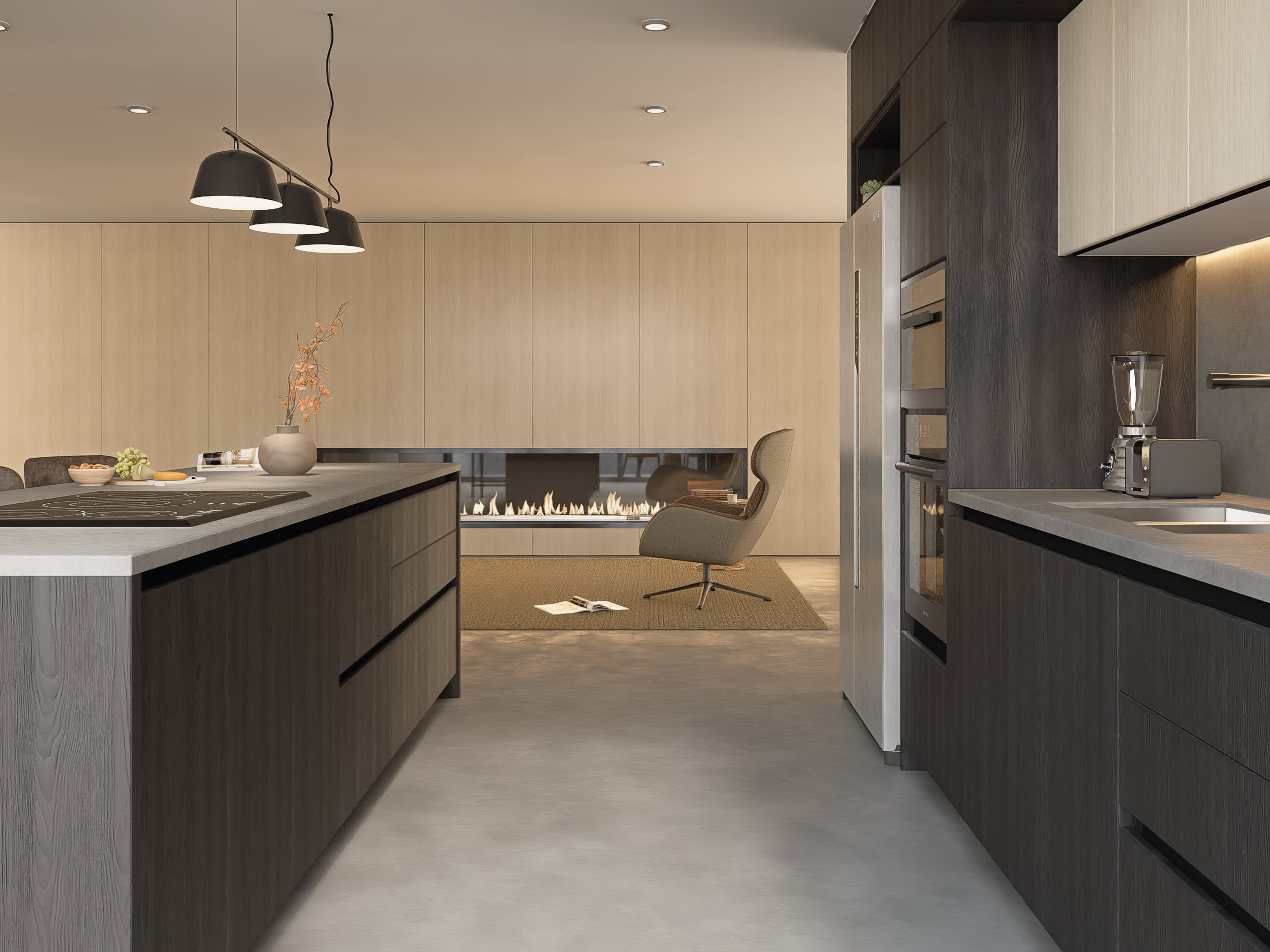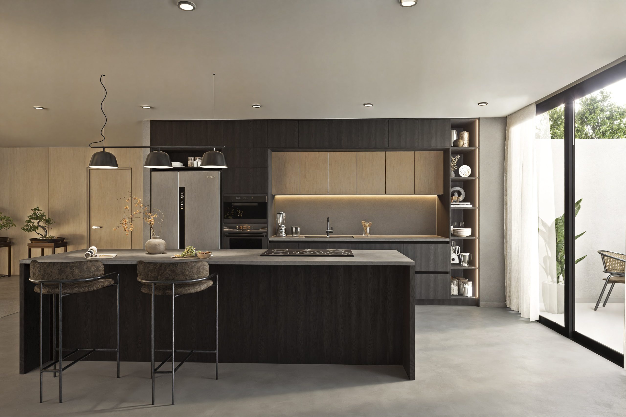 Si buscas espacios más sobrios y con estilo industrial, Umbra es para ti. Tonos oscuros, profundos y envolventes se fusionan con matices neutros para lograr un estilo contemporáneo, elegante y estética moderna.